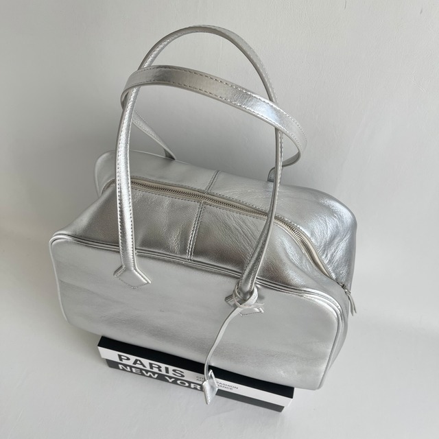 - Stock Sale Collection - こちらはサンプル在庫のため 若干革にクセなどがついています。 正規品と規格は変わりませんが、 完璧な状態ではございませんので 限定価格にて販売いたします。 とてもシンプルなので ON/OFFと幅広く活用いただけ 使うほどに本革ならではの味わいや雰囲気に♪ 開口部は広く、中も見やすく 大きな荷物の出し入れしやすい仕様になっています。 中には、オープンタイプとファスナーのポケットも。 価格:19,000円 → 限定価格:9,000円 =================== 皮革は、自然の産物となりますので 無駄なくあらゆる部位を使用したいと考えています。 天然皮革は高級素材であっても、 革繊維の密度や部位により表面に細かい皺やシボが見られます。 その為、掲載写真と異なる場合もございます。 それも革の個性として楽しんでいただけましたら幸いでございます。 ※個体差、感じ方に個人差がありますので ご理解のほどよろしくお願いいたします。 =================== [ カラー ] Silver [ 素材 ] 牛革 [ サイズ ] W35cm×H23cm×D16cm ハンドル高さ:23㎝ ※平置きして採寸した長さになります。 ※サイズの測定方法によっては誤差が生じる場合があります。 [ 発送について ] ご注文確定日〜7営業日以内の発送となります。 ※土日祝を挟んだ場合、休日は発送がお休みになるため ご注文日より7日から10日ほど日数がかかる場合があります。 ※発送業務営業日 : 月~金10:00-17:00 ------------------------------------------------------------------ { ご注意とお願い } こちらの製品は海外工場での製作となり、海外商品は日本の検品基準と異なる為、一見、不良品かと思われるような物もございますが海外では良品扱いになる場合がございます。特にハンドメイド製品には個体差もあります。 当店ではユニバーサルな品質出荷基準に基づきご使用に問題のない範囲の商品を販売させて頂いておりますので、ご理解の上ご購入のご検討をお願いいたします。
