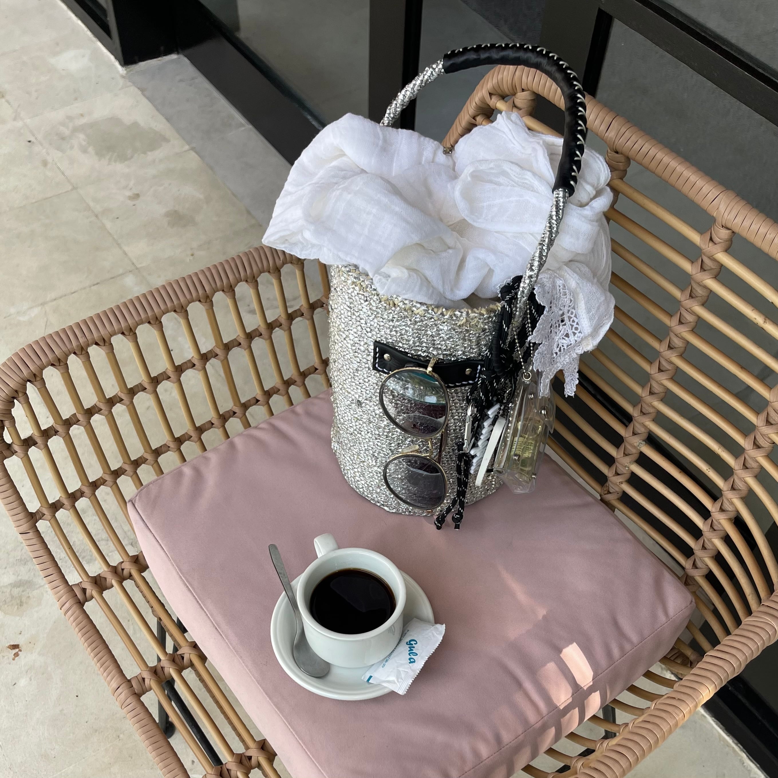リクエストをありがとうございます。 ブルーカラーの追加販売と合わせ ブラックカラーのコンビカラーも発売いたします。 ご購入の際、カラーをお選びください。 また、サイズのお問い合わせもありがとうございます。 お約束はできませんが、 大きめ小さめのご希望がございましたら ご購入の際、備考欄にご記入ください。 ------------------------------------- ハンドルの長さやカラーを変えて コレクションしたくなるシルバーカラーのかごバッグ。 ショルダータイプに新色が仲間入♪ 季節を選ばず、 コーディネートに彩りを添えてくれる シルバーとのコンビネーション”ジェイブルー” 爽やかさと大人っぽさを両立する スモーキーな深みあるブルーは 季節を問わずコーデに馴染みやすい色合いです。 持ち手の長いショルダータイプは 肩から掛けた時もカラダへのあたりが優しく 柔らかさと軽さが魅力のKago-Bag 身体に沿ってカーブしてくれる 軽くて柔らかなので シルバーバッグの発売当初より人気のデザインになります。 また、こちらもご好評をいただいている グラスホルダー付きのデザイン お手持ちのアイウエアを バッグのワンポイントに♪ ※着用画像は、イメージ画像も含まれます。 サングラス、チャームは付属いたしません。 ______________________________________ 環境に優しい天然素材とリサイクル素材から作られるシルバーカラーのカゴバッグ。 資源回収システムが整わないケニアでは、食品加工の製造過程で出るフィルム端材などが、そのまま野外に投棄されてしまうことがほとんど。 それならば、その端材をサイザルバッグに編み込み「地球環境を考えたサステナビリティな製品にしょう」という発想からシルバーカラーのサイザイルが誕生しました。 そして、その思いに賛同した meong blue では2018年より取扱いを開始。 端材の中でも文字などカラープリントが入らないシルバーを限定した製作をいち早くオリジナルにてオーダーし、SDGsな活動として今に至っています。 そのシルバーの色合いは、デイリーコーデにも合わせやすいグレーにツヤをまとったようや色合いなどその時の端材により生まれる「一期一会」が楽しいバッグになりました。 また、天然素材がベースのカゴバッグになりますので、バッグのサイズや質感にも個性があり唯一無二な製品になっています。 ※ハンドメイド製品は個人により感じ方が変わります。 手づくりならではの個性とご理解のほどよろしくお願いいたします。 ________________________________________ そして、 海外と日本の手仕事が素敵にコラボし誕生したレザーコンビバッグ。 アフリカに住む女性の手仕事からつくられるサイザル麻の製品は丈夫で10年使えると言われています。 そんな丈夫なバッグにmeong blueオリジナルのモチーフやチャームをつけて、遊び心あるデザインバッグに仕上げました。 革のハンドルは手にフィットしやすいシュリンクレザーを使用、重たいモノを入れても持ちやすく機能的! 隙間なく革を付けているので、革だけズレてしまうこともありません。 ハンドル加工、革のモチーフなどひとつひとつmeong blue国内工房で手作業で丁寧に仕上げられ、大量生産では決して出来ない繊細な仕上がりを感じていただけます。 カジュアルだけど妥協しない、そんな@meong_satokoの欲張りな思いが詰まった特別なバッグ。 手仕事の温もりを感じて頂けましたら幸いでございます。 ____________________________________ [ 発送について ] 3月下旬 [ 素材 ] バッグ本体 = サイザル麻 持ち手 = シュリンクレザー (牛革) ※着用イメージのチャームは付属しておりません。 [ カラー ] バッグ = シルバー ハンドル = ブルーまたは、ブラック [ サイズ/センチ ] バッグ = W55~60(口周)xH23x18~19(底周)x50〜53(ハンドル全長) ※バッグは天然素材のハンドメイド品のため、色合い、形、サイズに多少のバラつきがあります。 [ 取扱いのご注意 ] 天然素材を使用しているため、直射日光など長時間照射により、色褪せ、変色することがあります。 また、水や摩擦により、色落ち・移染する場合がありますので特に白い物等とのご使用はお避けください。 万が一、変色、色移り等が生じた場合でも責任は負えませんのでご了承ください。 ------------------------------------------------------------------ { ご注意とお願い } 海外商品は日本の検品基準と異なる為、一見、不良品かと思われるような物もございますが海外では良品扱いになる場合がございます。特にハンドメイド製品には個体差もあります。 当店では製作者・メーカーの品質出荷基準に基づきご使用に問題のない範囲の商品を販売させて頂いておりますので、ご理解の上ご購入のご検討をお願いいたします。 サイザルバッグは天然素材を使用しておりますので、実物は個人により感じ方が変わります。手づくりならではの個性とご理解のほどよろしくお願いいたします。 どうぞ、手仕事の温もりを感じて頂けますように。