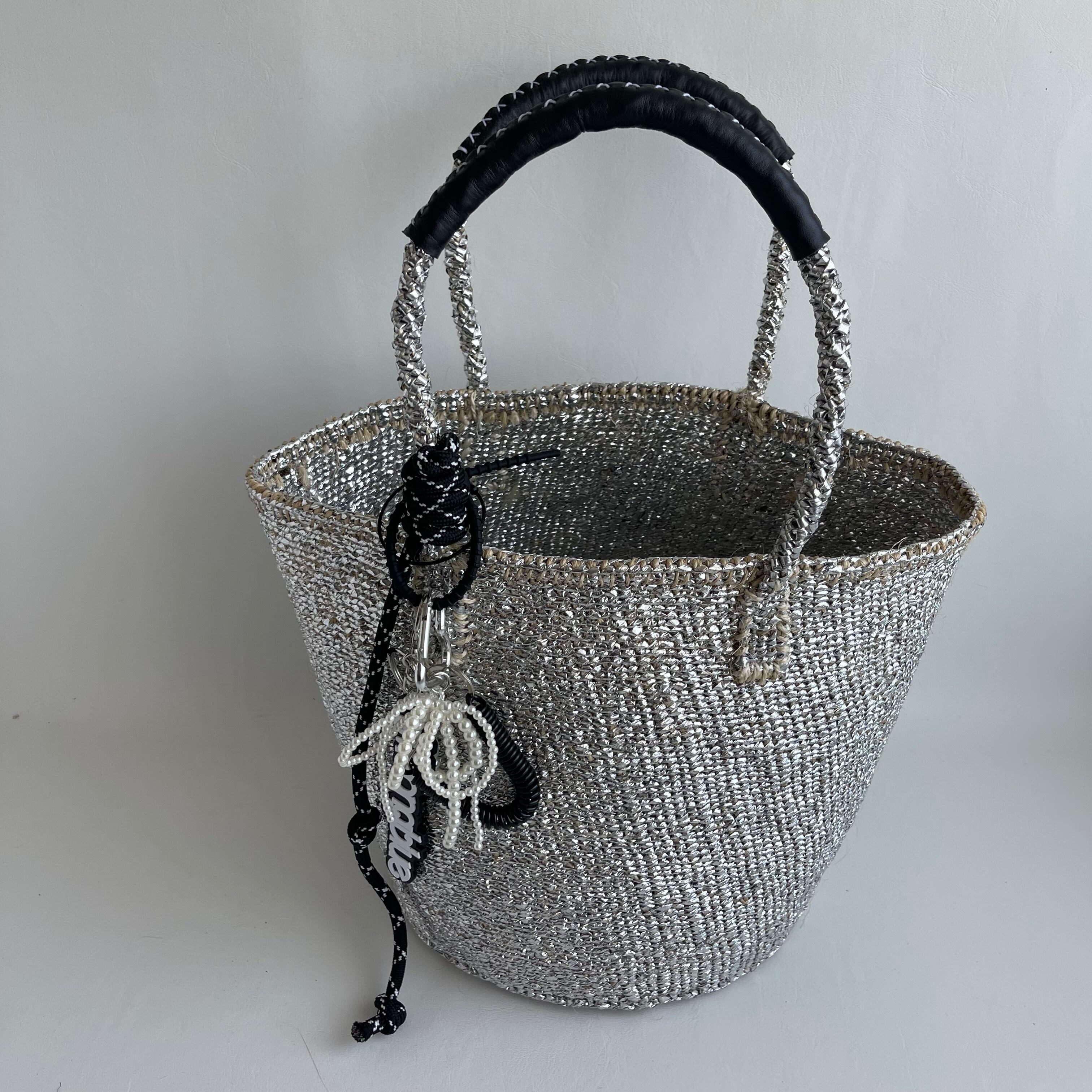 それならば、その端材をサイザルバッグに編み込み、地球環境を考えたサステナビリティな製品にしょう、という発想からシルバーカラーのサイザイルが誕生しました。