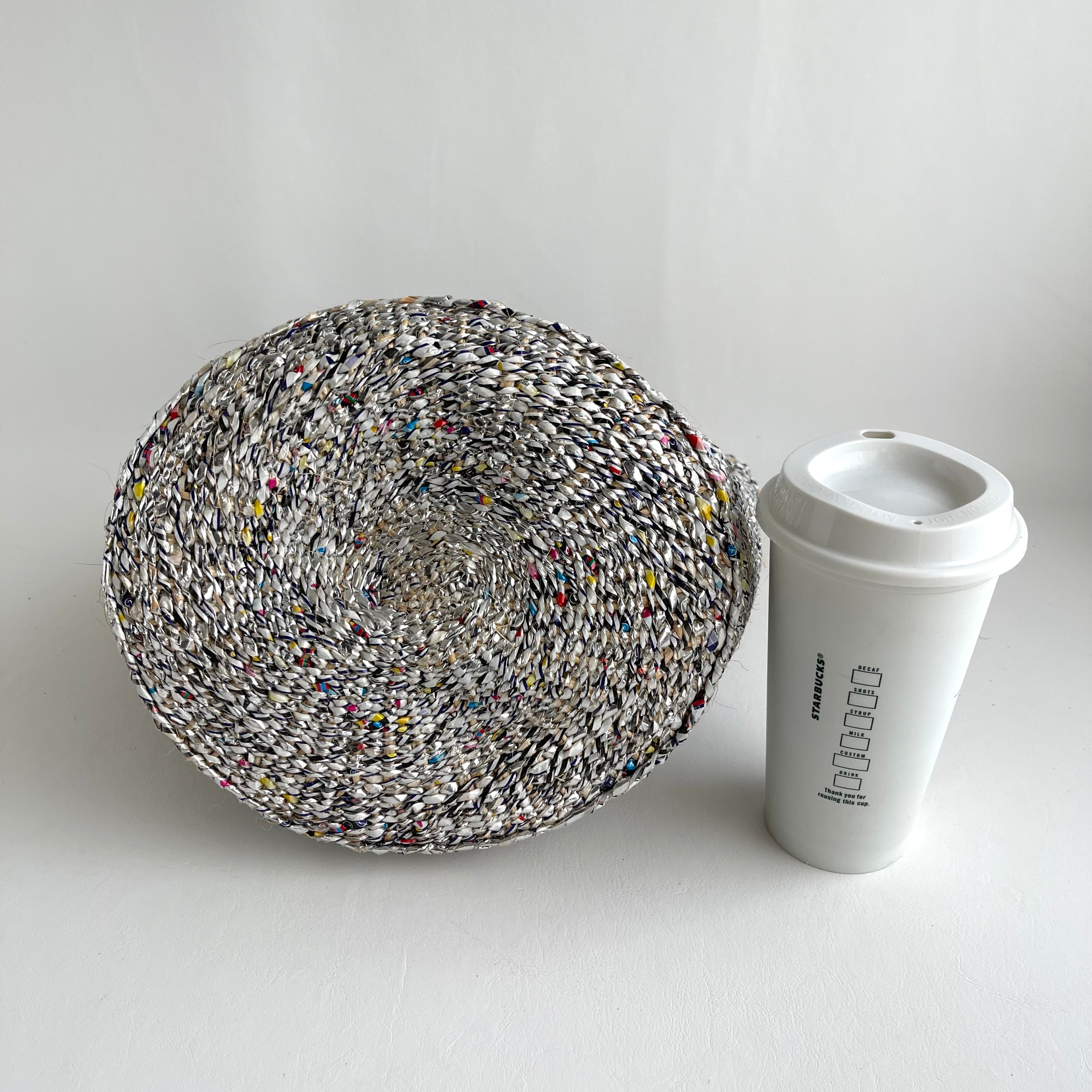 それならば、その端材をサイザルバッグに編み込み、地球環境を考えたサステナビリティな製品にしょう、という発想からシルバーカラーのサイザイルが誕生しました。
