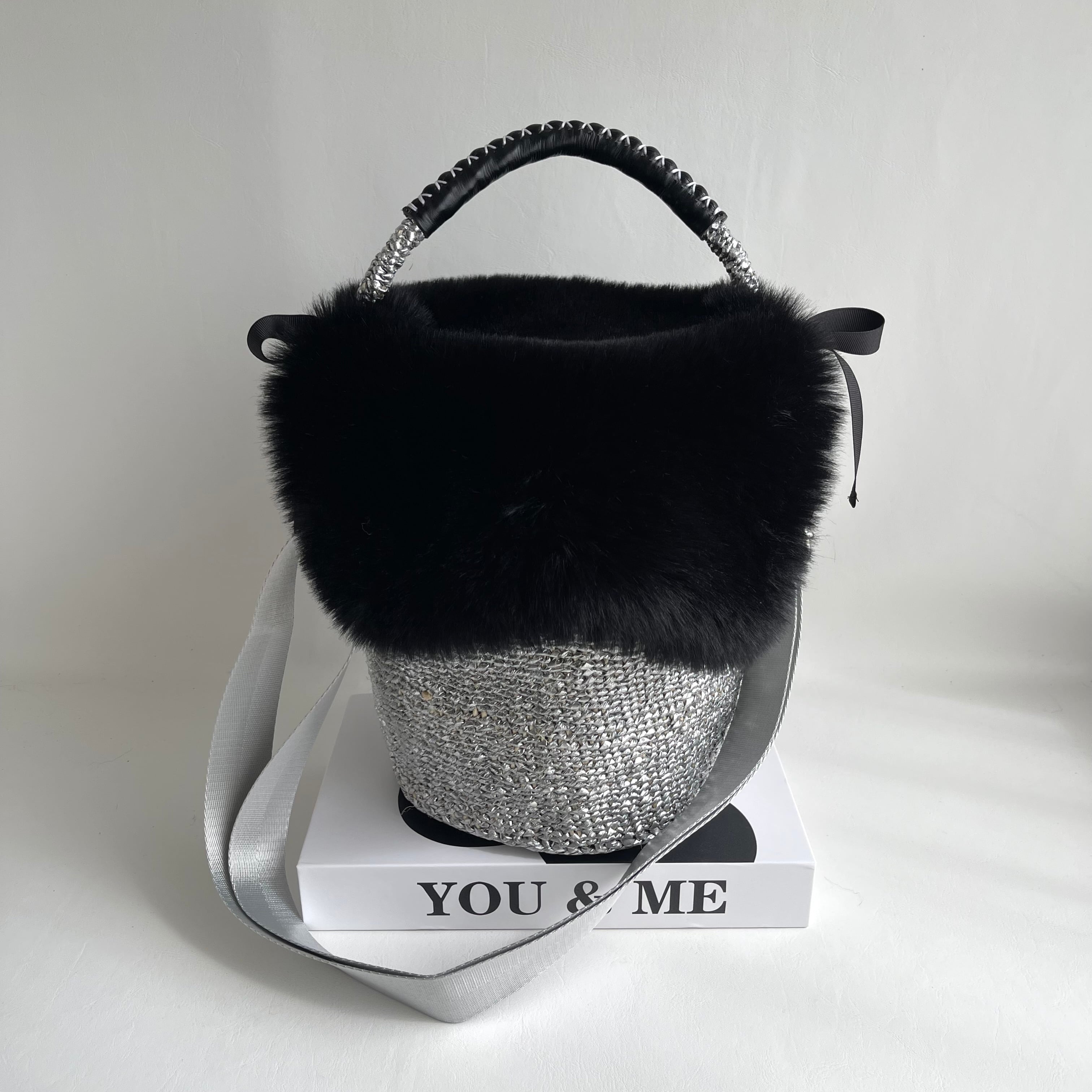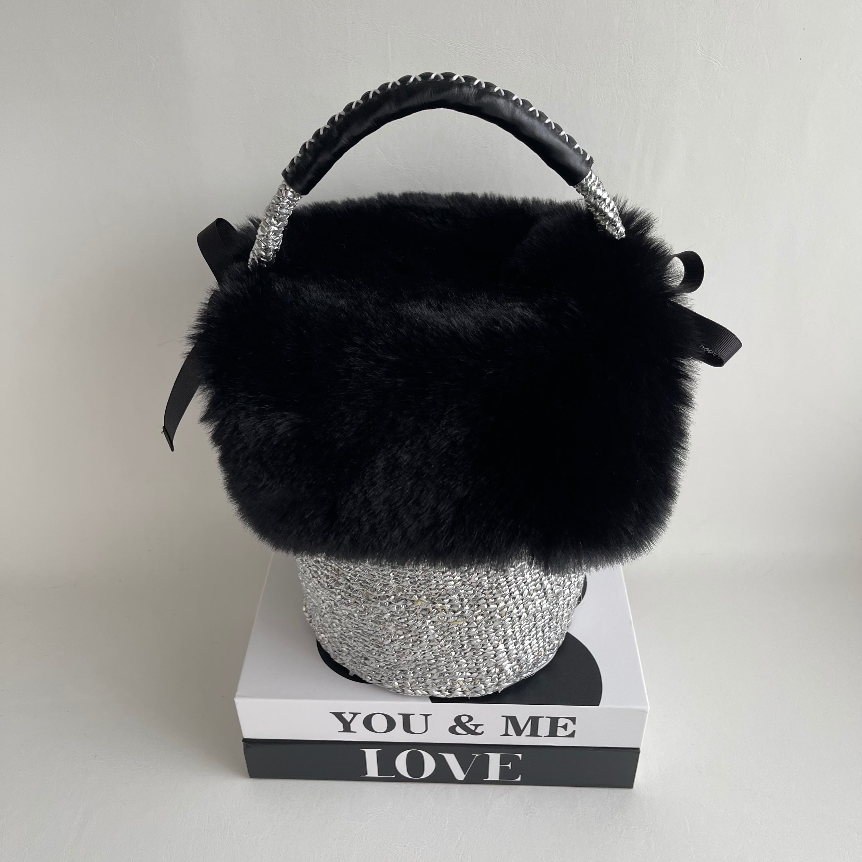 【 追加販売 】OVAL Shoulder Strap Kago-Bag / BLACK FLUFFY FUR