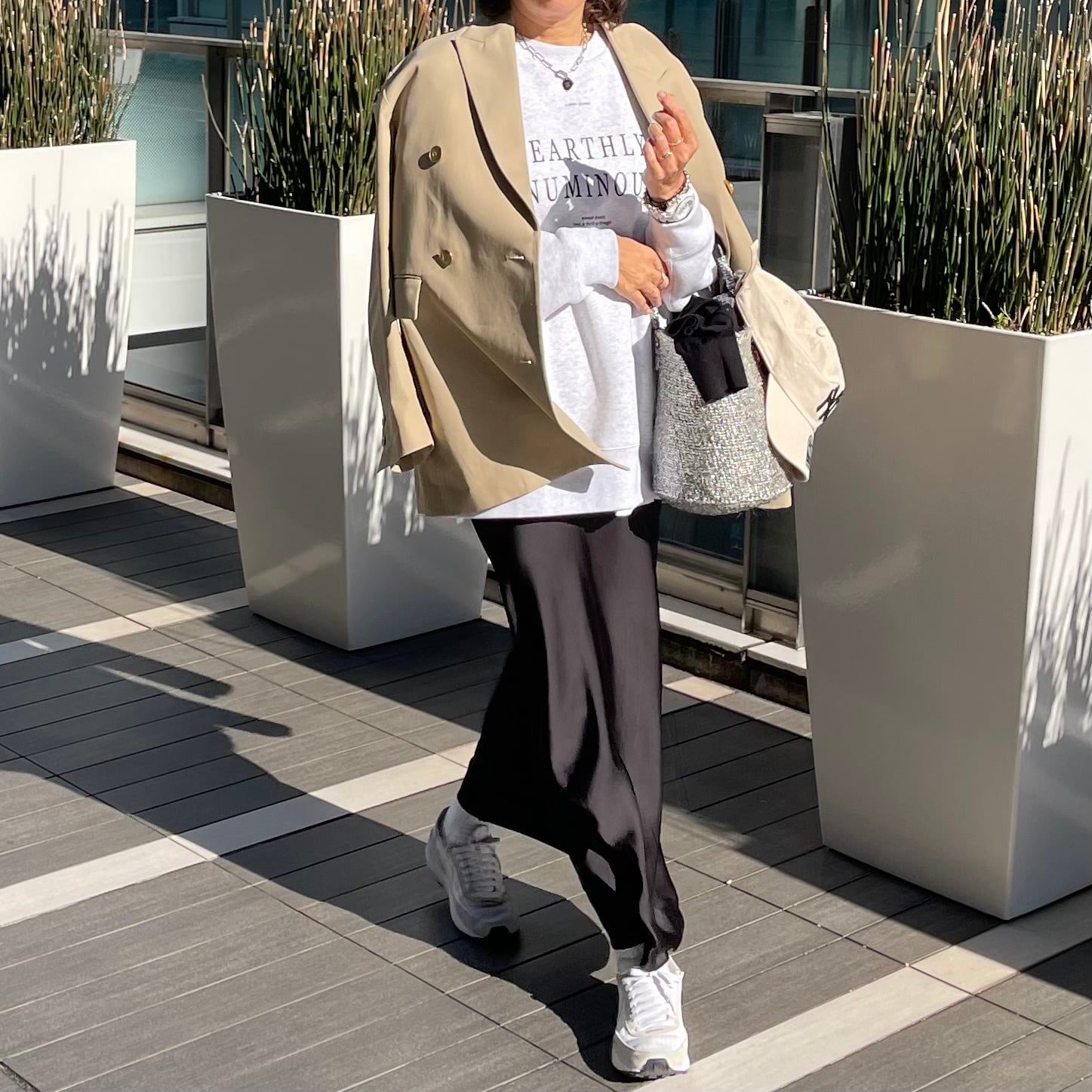 こちらの商品は大きめシルエットを楽しんでいただくデザインになります。サイズにつきましては、十分にご検討いただいた上でお買い求めくださいますようよろしくお願いいたします。