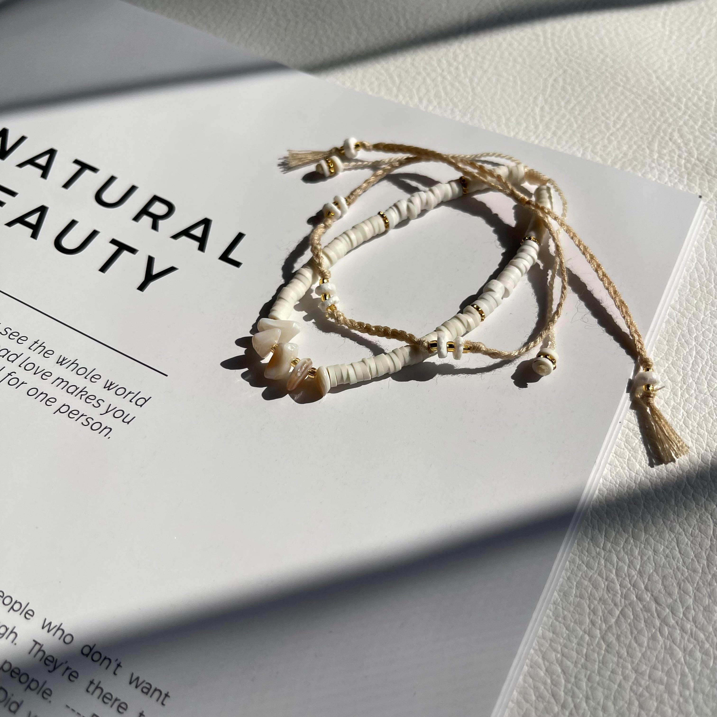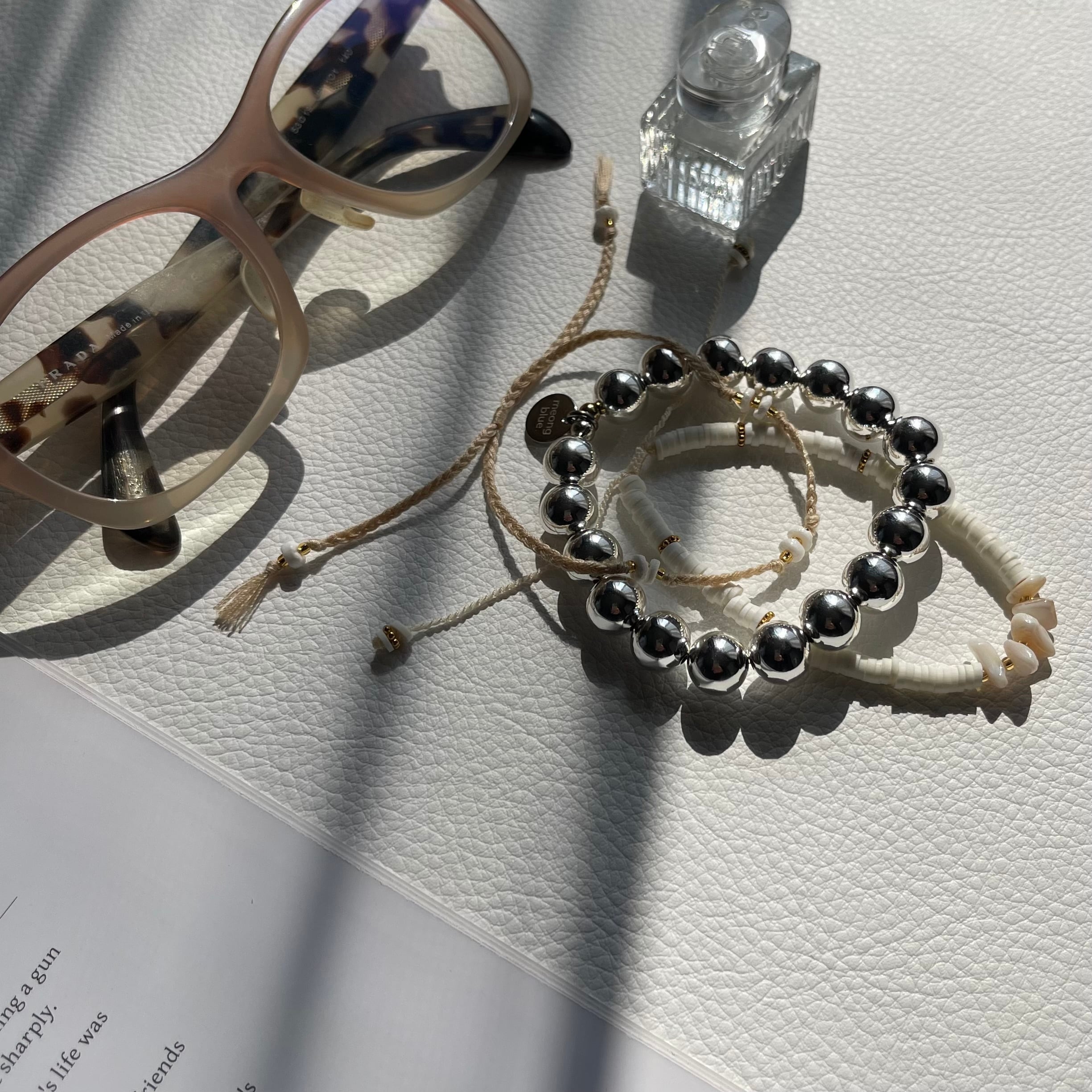 Bracelet 3set / Shell Bead Cord x Loop Silver / Ivory / ブレスレット